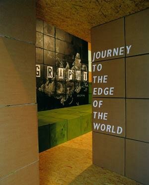 The artist has arranged three rooms with more than 800 cardboard boxes, video and slide projections, sound and a large chalk drawing of a map of the world. His work reflects on the history of the Scottish island St. Kilda. Its inhabitants were cut off from civilisation for over a thousand years and found their own ways of living in a community. In 1930 the island was evacuated, when the islanders' survival was threatened by illness.